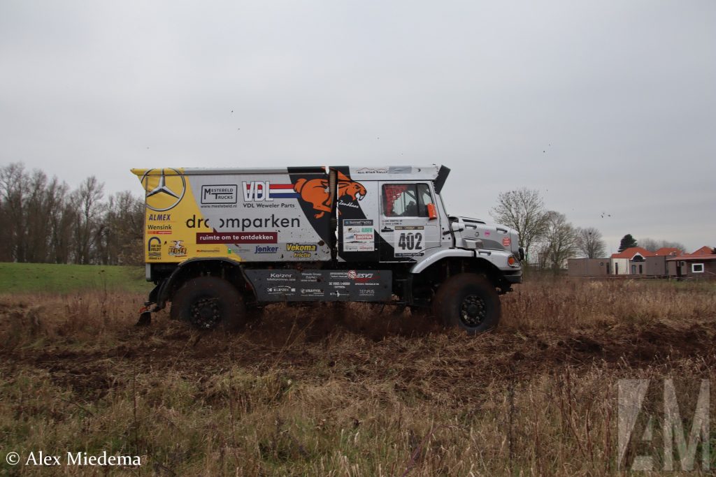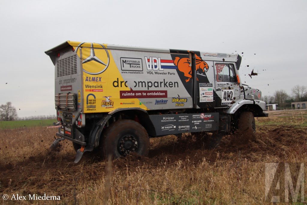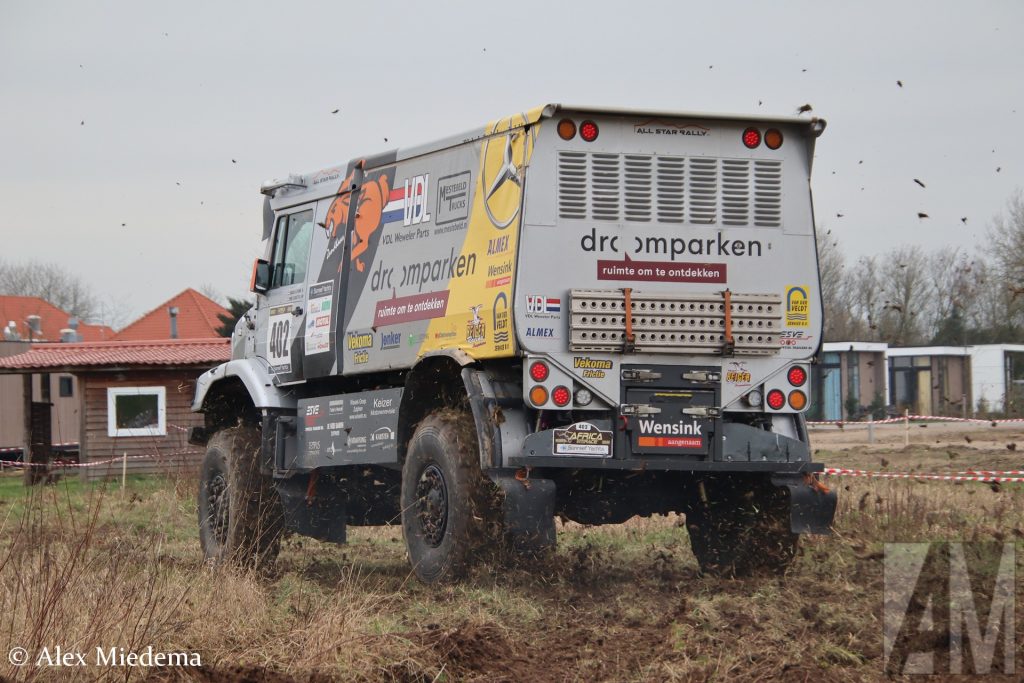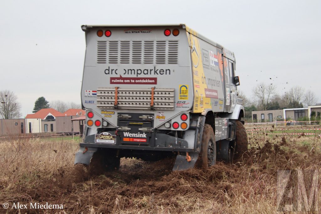 Op zaterdag 8 en zondag 9 februari organiseerde het All Star Rally team van Johan Elfrink een Meet & Greet weekend bij sponsor droomparken, op locatie Marina Strandbad bij Olburgen, voor Johan zelf lekker dicht bij, maar wel aan de verkeerde kant van de rivier. Ondanks het hoge water en een overijverige gemeente-ambtenaar werd het toch een hele mooie dag waar vooral veel geïnteresseerden uit de regio op af kwamen, vaak als eerste kennismaking met deze mooie tak van autosport. Je kon op de foto met de truck, een praatje maken met de teamleden en meerijden in één van de Suzuki offroadbommetjes. Maar het hoogtepunt van de dag was natuurlijk het meerijden met Johan zelf in de Zetros, over een korte maar mooie baan. Uw verslaggevers Robert Baarda en Alex Miedema waren uiteraard aanwezig om bijgaande beelden te maken.