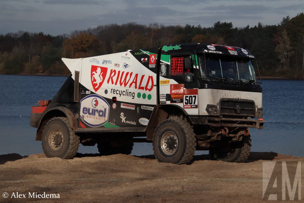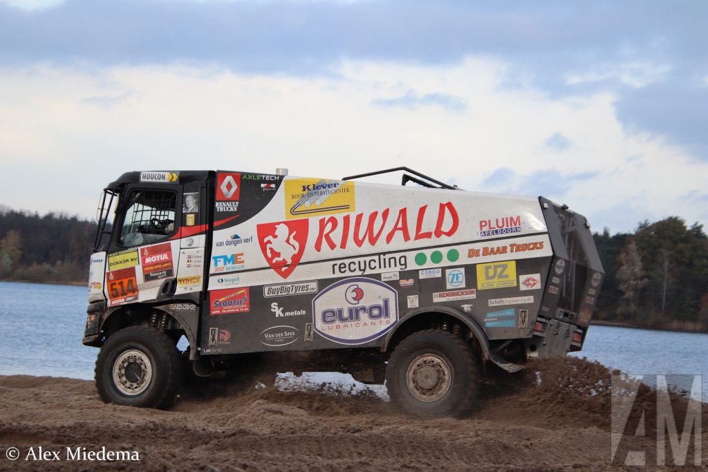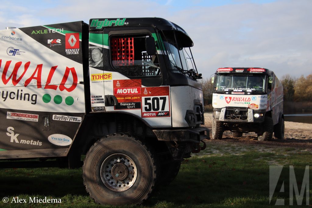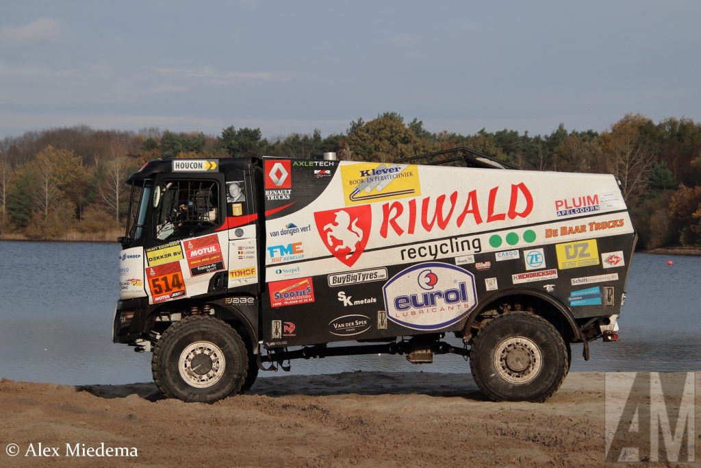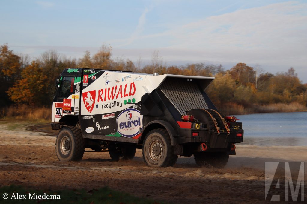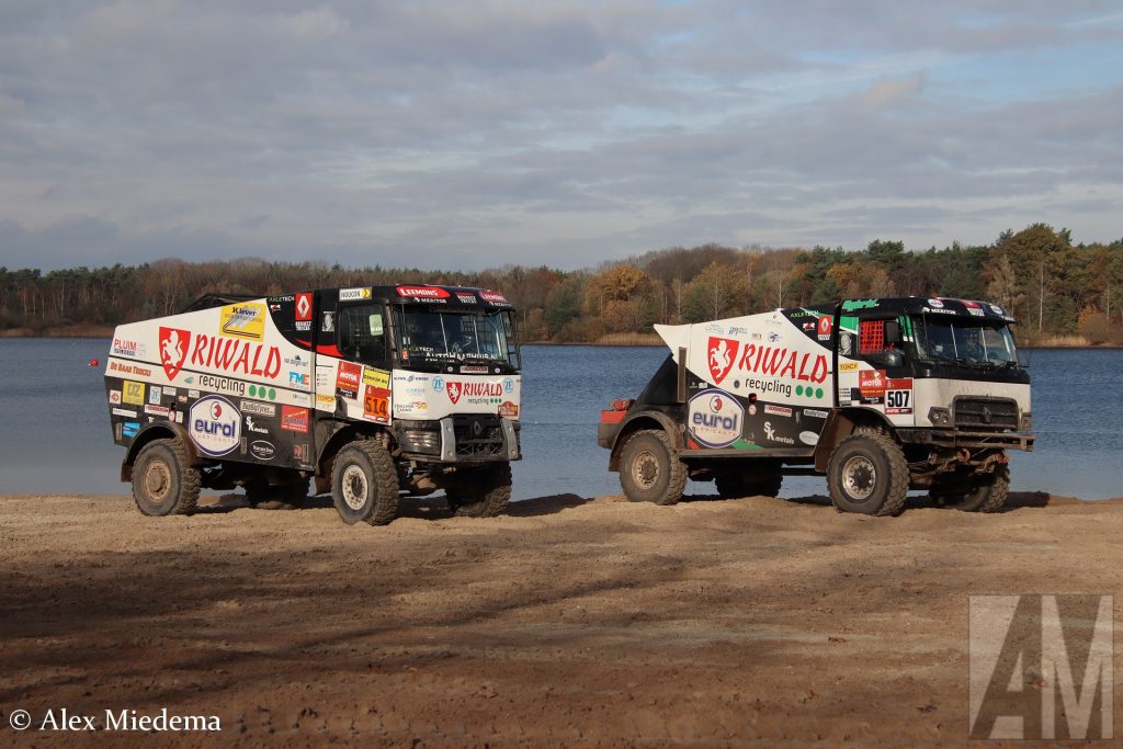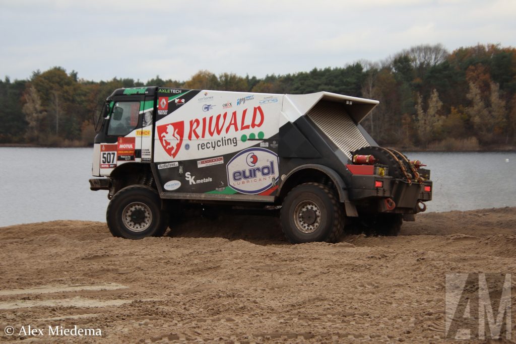 Het geluid van brullende, driftende rallytrucks. Man, wat was het fijn om dat weer even te mogen ervaren tijdens de shake down die het Riwald Dakar Team afgelopen zaterdag hield op het terrein van Experience Island bij Loon op Zand.