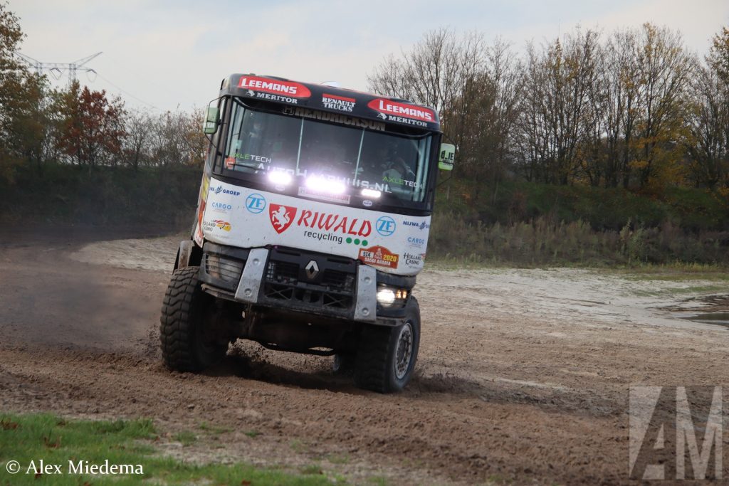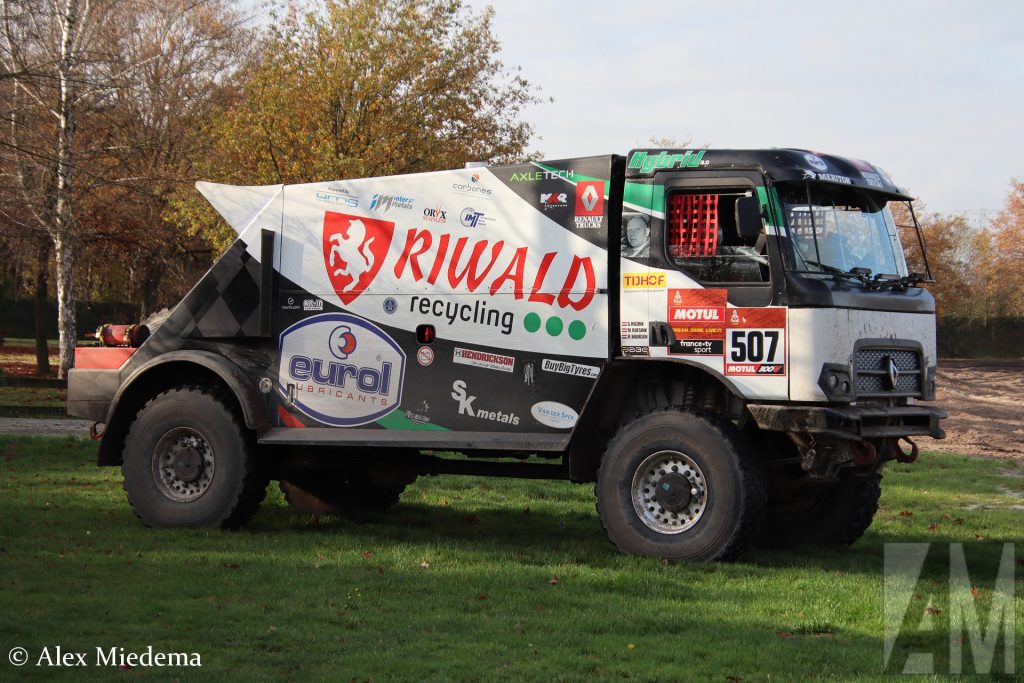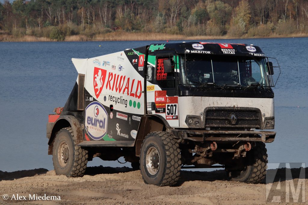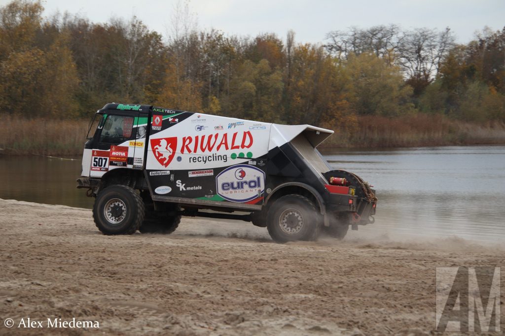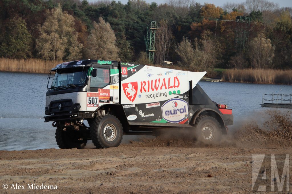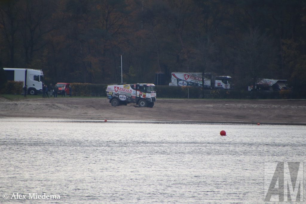 Het geluid van brullende, driftende rallytrucks. Man, wat was het fijn om dat weer even te mogen ervaren tijdens de shake down die het Riwald Dakar Team afgelopen zaterdag hield op het terrein van Experience Island bij Loon op Zand.