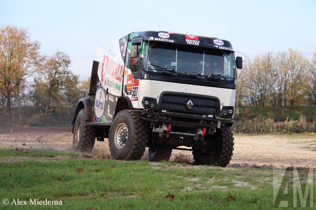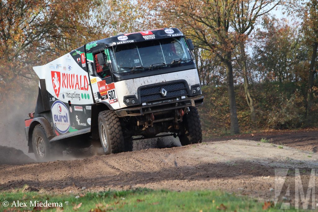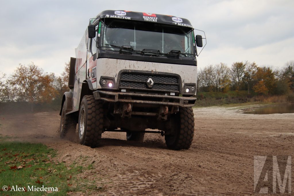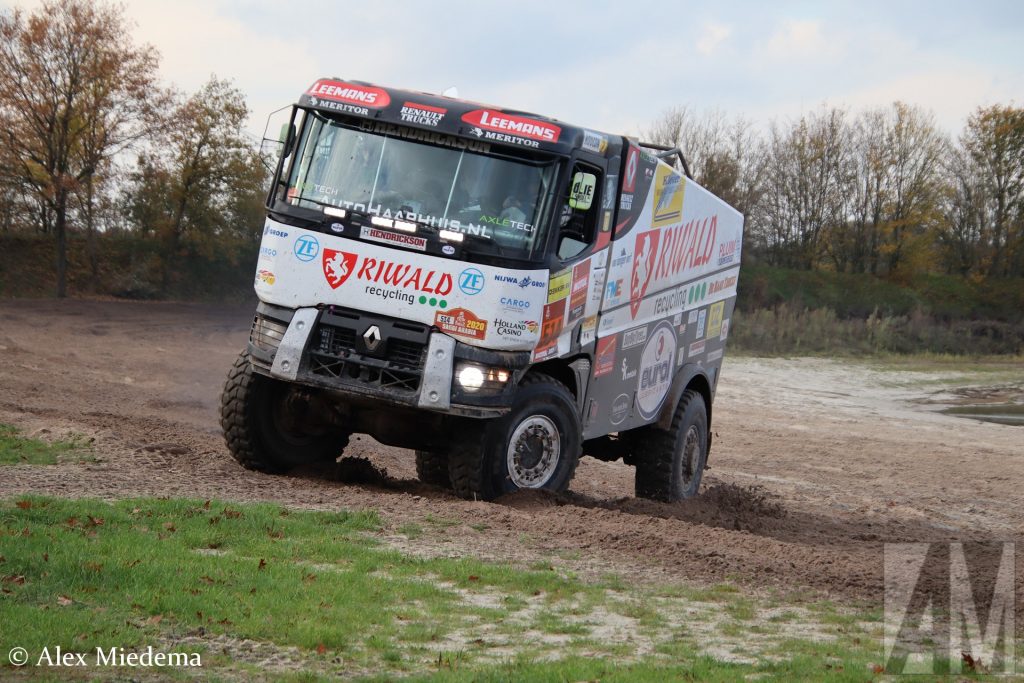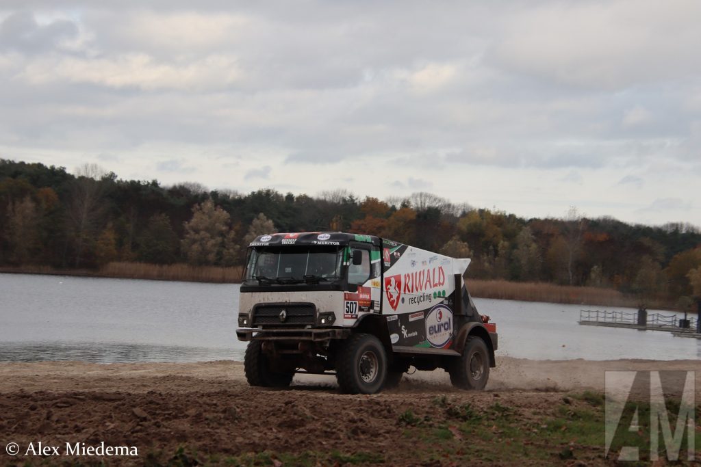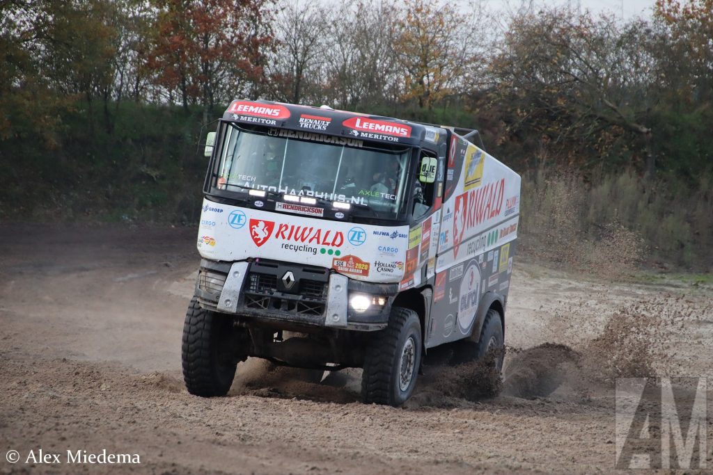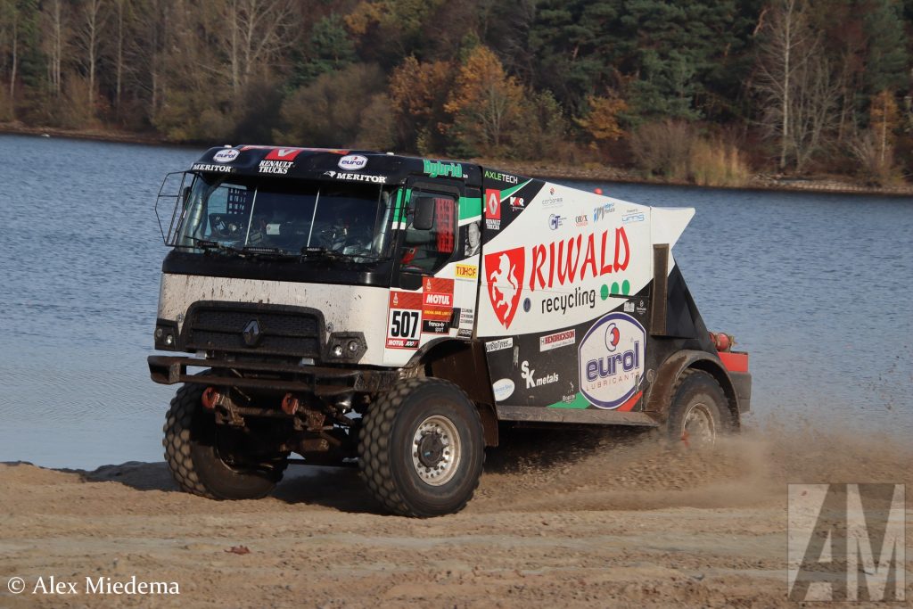 Het geluid van brullende, driftende rallytrucks. Man, wat was het fijn om dat weer even te mogen ervaren tijdens de shake down die het Riwald Dakar Team afgelopen zaterdag hield op het terrein van Experience Island bij Loon op Zand.