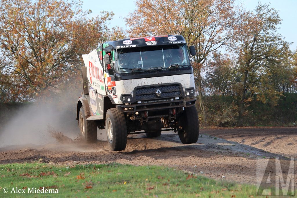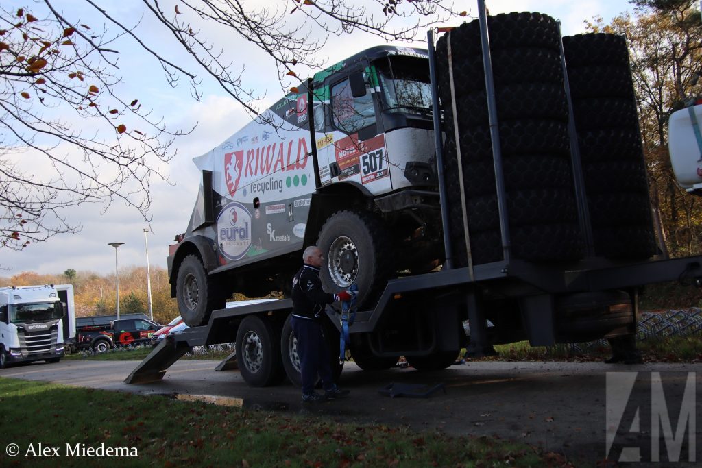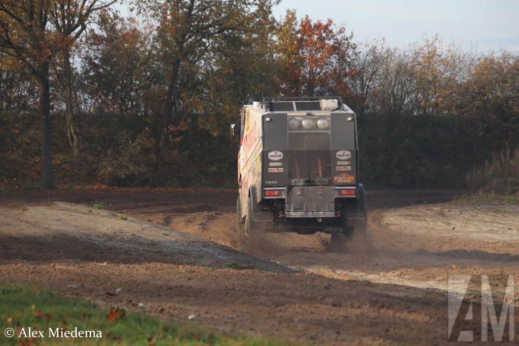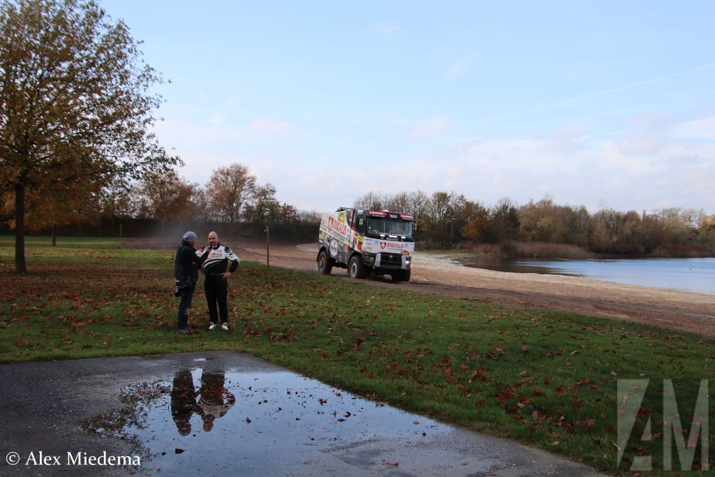 Aan de kant stond Mario Kress rustig lurkend aan zijn e-smoker mee te kijken hoe zijn materiaal nog even flink aan de tand gevoeld werd. Hij en z’n monteurs mogen in Tsjechië nog even aan de slag om de laatste puntjes op de i te zetten en dan worden de trucks begin december in top conditie op de boot naar Saudi-Arabië gezet.