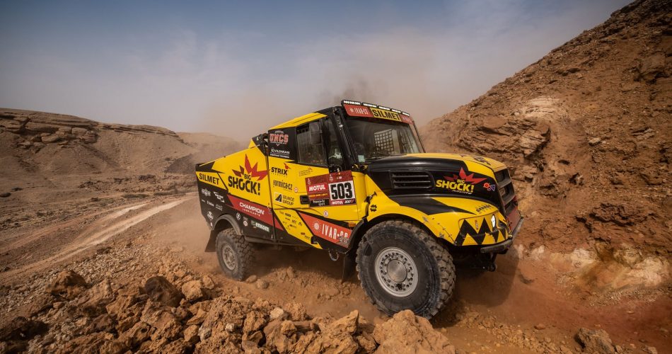 Na heel wat zaagwerk aan de poten van de troon van Kamaz, was vandaag eindelijk de eerste Tsjechische etappe-overwinning van 2021. Martin Macik junior wist de lus rond Neom in 4 uren, 42 minuten en 50 seconden af te leggen, twee minuten en 27 seconden sneller dan Mardeev in de snelste Kamaz, die tweede werd. In Brabant zullen er vandaag ongetwijfeld enkele wat-als gedachten door koppies gegaan zijn: Macik gebruikt hetzelfde chassis als Dakar Speed en vertegenwoordigt hetzelfde merk als De Rooy en Van de Laar. Hopelijk in 2022 wat meer overwinningen voor dit chassis en/of Iveco? Macik: “We genieten van de duinen! Het is met name daar interessant te zien wat de verschillen zijn tussen een automatische versnellingsbak en een handbak. Voor nu ben ik zeer tevreden!”