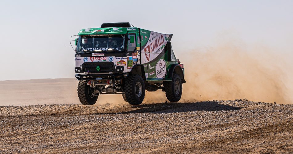 Vick Versteijnen: “Vandaag was een echte mooie en zware Dakar proef. Het parcours kende naast veel stenen, hoge duinen en snelle stukken op het laatst ook nog verraderlijke natte wadi’s. Daar stond onder andere de Kamaz van Karginov muurvast. Bij de laatste verplichte pauze plek zagen we dat de band rechts achter op het staal zat. Maar deze mag je alleen in de proef wisselen. We hebben toen besloten de snelheid eruit te halen en niet te wisselen. Gelukkig hebben we de finish daarmee gehaald op een mooie achtste plek. Ik ben zeer tevreden zeker gezien we als negentiende moesten starten. Op naar meer van zulke mooie dagen.”