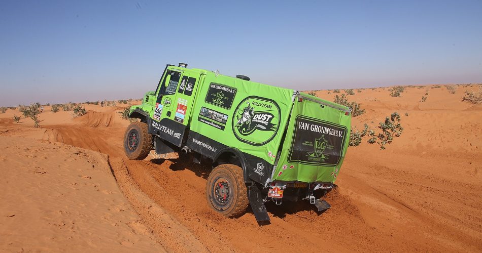 Gebroeders de Groot reden ook weer lekker mee met de Timmermans-DAFs! Ben de Groot: “Vandaag een hele mooie rally gehad, het was een snelle stage, volle bak er op, auto deed het goed, veren goed, Daarna een duinenpartij, was ook supermooi om doorheen te surfen, echt een geweldige ervaring. Het vermogen van de auto zat er volop in. Uiteindelijk een flink lang snel stuk, waar ik een gevecht met Wingens had. Super tevreden!”