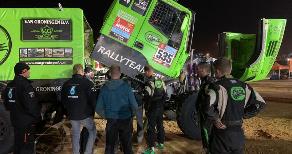 Gelukkig is er ook goed nieuws te melden. Het Rainbow Truck Team is afgelopen nacht ontzettend laat (de tijdwaarnemers lagen al op bed dus we weten niet precies wanneer en wat Zuurmond zijn positie in het klassement is) binnen gekomen. De monteurs hadden overdag bijgeslapen zodat ze in wat er nog over was van de nacht aan de truck konden werken. Er is nog een veerpakket vervangen, de truck is vanochtend gelukkig gewoon weer gestart en rijdt op het moment van schrijven lekker mee.