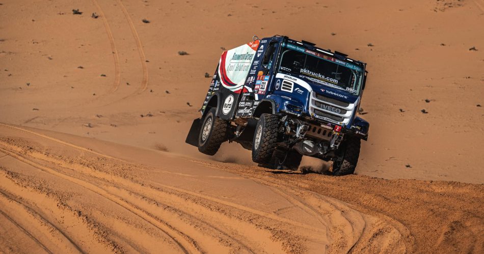 Van de Laar: “Het was een topdag, negende tijd! De special was heel mooi. Voor 100 procent zand en duinen, met een heel gave afwisseling van snelle tracks en duinen. Supermooi om daar met de truck doorheen te rijden. Gaandeweg werd het steeds technischer en ook de navigatie werd steeds een beetje moeilijker. Er zaten best wat lastige puntjes in.”