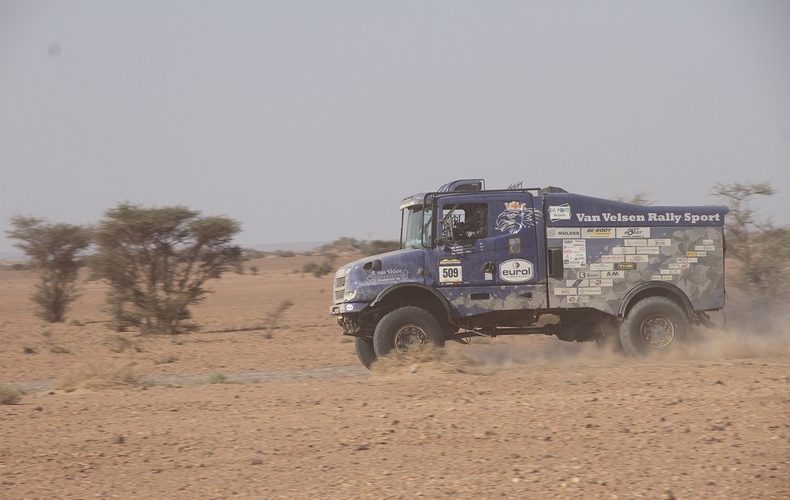 Aad van Velsen staat bekend als één van de meest constante rijders in het veld. Dat bewijst de Stompwijker ook deze rally weer. Van Velsen Rallysport staat op een prachtige vierde positie in het klassement op slechts een kwartier van plek drie. Wie weet lukt het nog om dat gat te dichten, maar ook als dat niet lukt en dit de eindpositie wordt is het hechte team al meer dan tevreden. De Scania met startnummer 509 is een geweldige aankoop gebleken en blijkt een meer dan waardige opvolgers van de Ginaf waarmee Van Velsen jarenlang door de woestijn zoefde. Met zoon Michel als monteur en Marco Siemons als navigator wordt uitgekeken naar de laatste, afsluitende etappe rond Merzouga. Wij, als Rallytrucksmannetjes, mochten deze rally weer optrekken met Van Velsen Rallysport en daarvoor alvast grote dank!