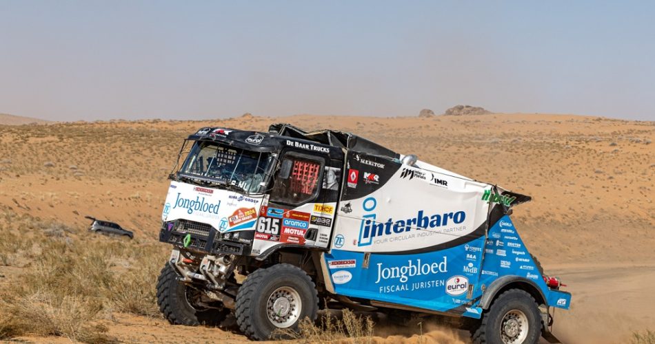 Vandaag drie Tsjechische trucks in de top 3, maar de snelste werd door een Nederlander bestuurd: de door MKR gebouwde hybride Renault van Gert Huzink, Rob Buursen en Martin Roesink. Ze waren op de track tussen Ha’Il en Al Ula anderhalve minuut sneller dan Macik en viereneenhalve minuut sneller dan Loprais. De Praga-bestuurder deed goede zaken in de strijd om de tweede plaats in het klassement met Mitchel van den Brink, de jonge Harskamper verloor wat tijd, maar finishte alsnog keurig vierde.