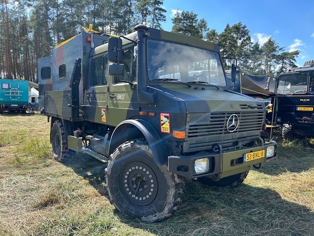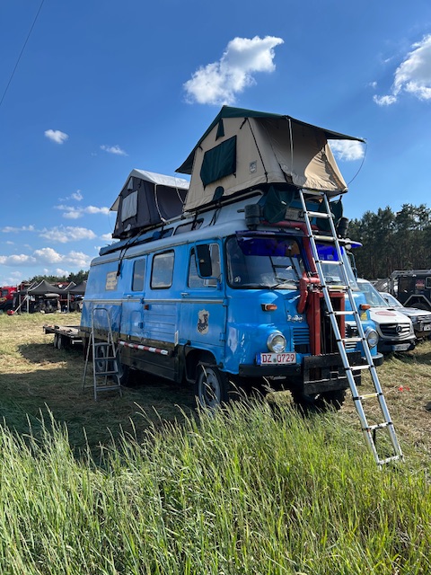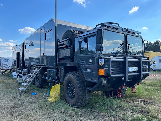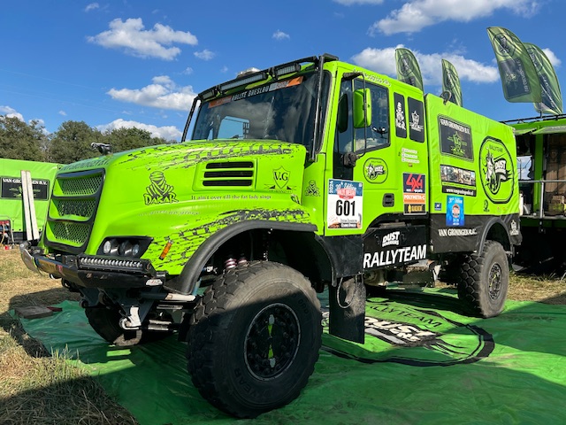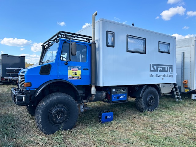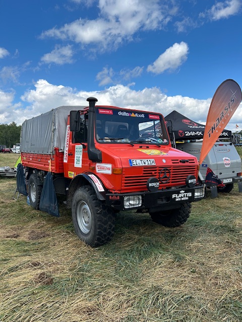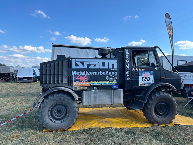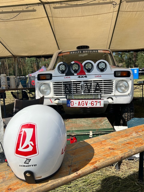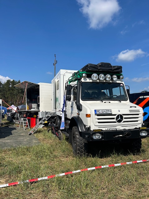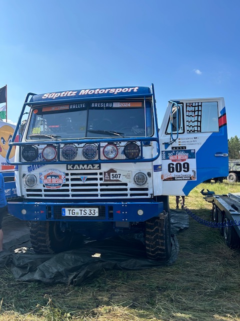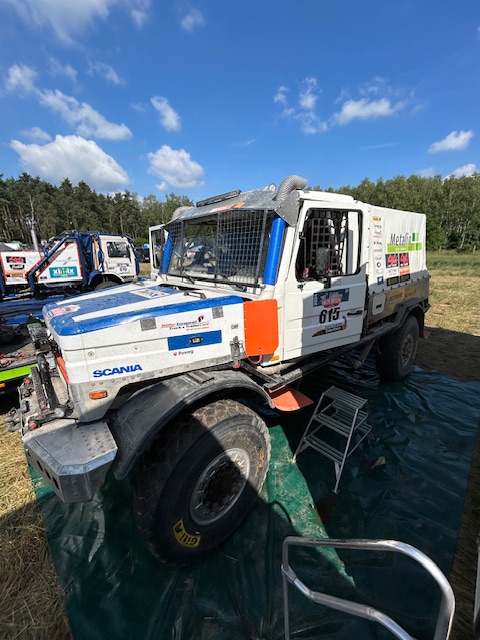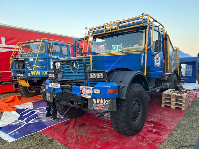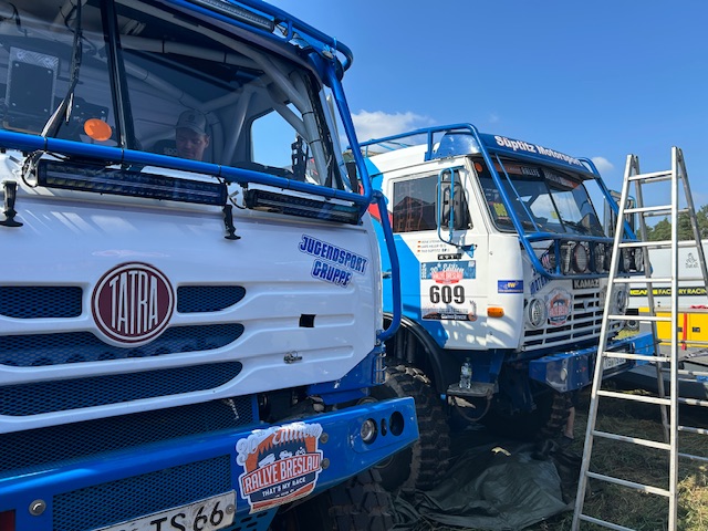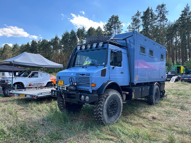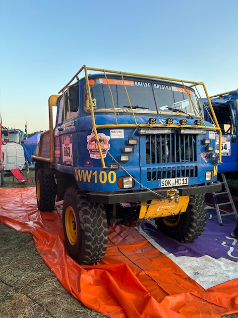 Op het immense bivak van de Breslau rally staan veel bijzondere voertuigen. Naast deelnemende trucks en auto’s ook assistentievoertuigen. Vooral een paar klassieke voertuigen uit het voormalig Oostblok en vele Unimog’s pakken de aandacht.