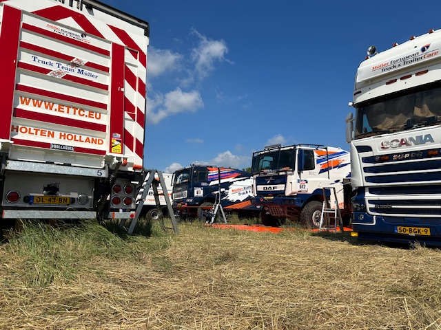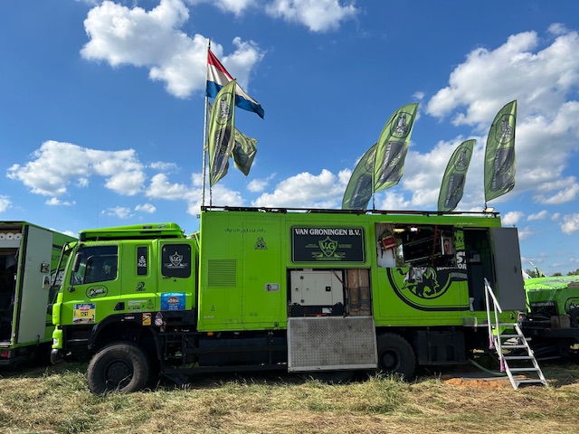 Truck Team Müller, Van de Krol, Holten en Rally Team Dust Warriors hebben een imposant stel asssistentievoertuigen meegenomen. Andere teams doen het wat bescheidener, maar ook daar is “mooi spul” aanwezig. Van hospitality trailer tot mobiele werkplaats en alles wat er tussenin zit.