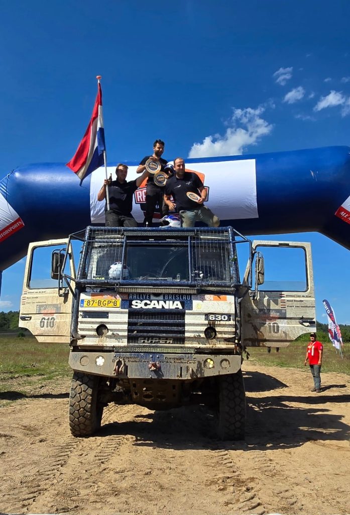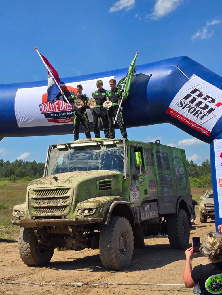 William van Groningen vond er eigenlijk niks aan om zo rustig rond te rijden. Toch werd hij met de Iveco Powerstar keurig derde in de etappe. Daar stonden de overige leden van Rally Team Dust Warriors de kampioenen van 2024 op te wachten.