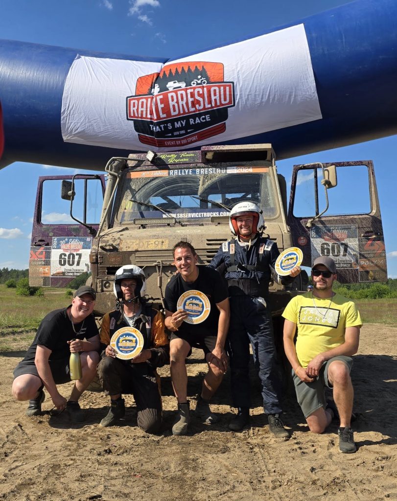 Aangezien Rallytrucks onder de warme vleugels van Truck Team Müller mee is geweest, hebben we het wel en wee van het team allemaal van dichtbij meegemaakt. Het is juist dan een kippenvel moment de ontlading aan de finish te zien. Vooral mooi om Anton Müller te zien glunderen van “zijn” jongens. Als debuterend team was het doel de finish te halen en daar de madaille op te halen. Deels is dat gelukt, want een madaille ophalen zat er niet in. De organisatie had in al haar jubileumwijsheid besloten tot het uitreiken van een bord. Tsja… dat kan ook. En kan je het niet om je nek hangen, dan hou je het maar voor je hoofd 😜