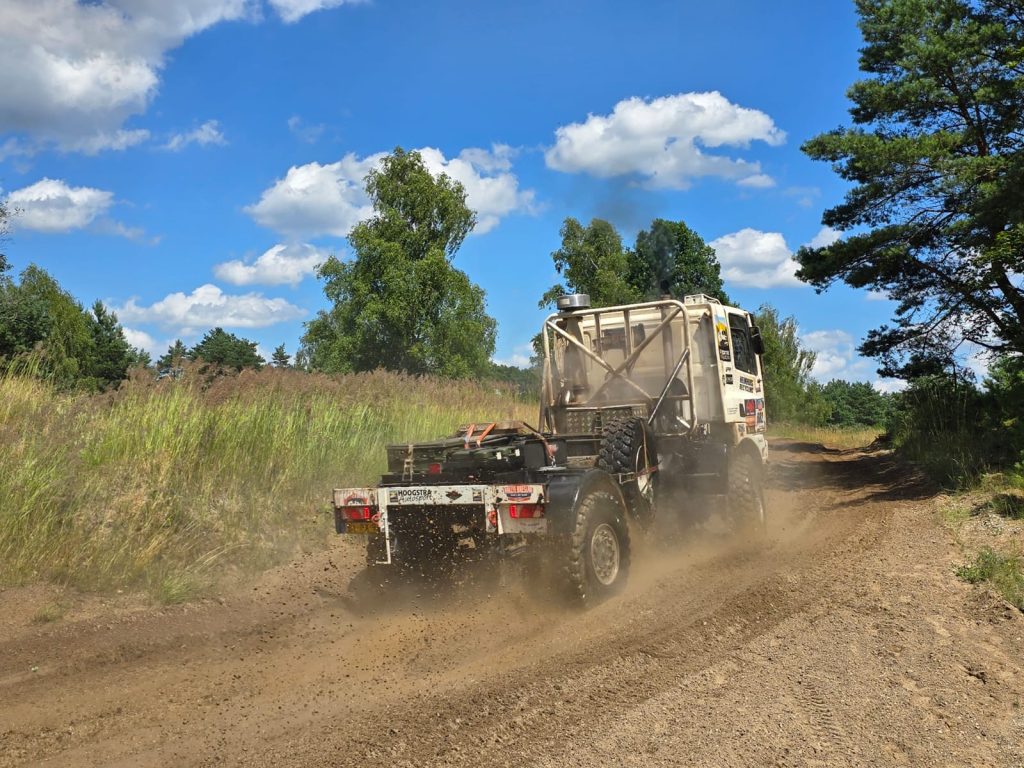 Daan de Graaf, vader Rene de Graaf en monteur Luuk Schevers zaten in een dikke MAN kat en hebben een bijzonder eigen avontuur beleefd. Voor Schevers wel even schakelen. Vorig jaar zat hij nog bij Kupper in het team. Nu werd hij “gedetacheerd” bij Team De Graaf om vader en zoon met al zijn kennis en kunde bij te staan. Ook hier zijn er al plannen voor de toekomst. Er zullen andere type schokbrekers worden gemonteerd op de truck en dan hoopt het team volgend jaar weer terug te komen. Vader en zoon hebben in ieder geval een prachitg avontuur met elkaar beleefd. Rene vatte het mooi en enigzins droog samen: “Het was toch wel een bucketlist dingetje.” We zien ze graag terug in 2025.