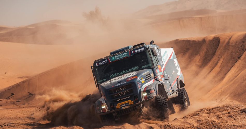 Posledni heeft afgelopen nacht een nieuwe, 1.100 kilo zware, vooras onder zijn Buggyra Tatra Phoenix geschroefd gekregen. Het zorgt niet voor een topklassering helaas voor hem, hij finisht vandaag 16e op +1:53:30 . Maar zonder vooras is het sowieso lastig finishen, een wheely met een Dakar truck kan wel, maar dat hou je geen 123 kilometer vol. Bovendien is dat gevaarlijk, tijdens een wheely heb je slecht zicht op de route, als er dan een motorfiets oversteekt kunnen de gevolgen desastreus zijn. Dus, ook aan iedereen die een Tatra Phoenix of een rallytrucks thuis heeft: geniet, maar wheely met mate. Wat vandaag helaas ook met mate ging: contact met de deelnemers. Bereik in het empty quarter, inclusief het bivak, is belabberd.