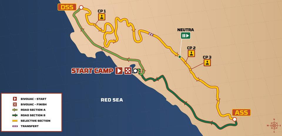 Het resultaat van vandaag bepaalt de startpositie voor de dag van morgen. Dan staat de eerste etappe te wachten, waar in in totaal 518 kilometers moeten worden afgelegd, waarvan 305 kilometer wedstrijdproef. Net als vandaag blijft ook morgen Yanbu start en finishplaats. Mitchel van den Brink mag als eerste aan het echte werk beginnen. De kop is eraf, maar de strijd gaat nu pas beginnen.