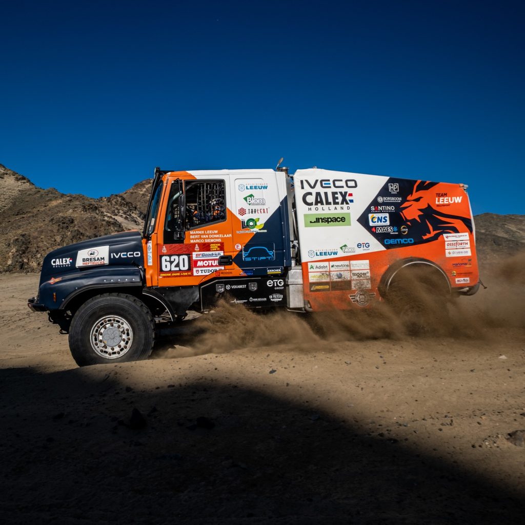 Gebroeders William en Ben De Groot hebben geen ambities voor top-klasseringen. William pakt desondanks een keurige elfde positie. Op plek twaalf zien we het DDW Rallyteam met rijder Egbert Wingens terug. Ook dat is een keurige prestatie. Ben de Groot wordt negentiende en Marnix Leeuw sluit vandaag de rij van Nederlanders. Door een lekke band vinden we de debutant bij de trucks terug op plek veertig met zijn door De Rooy gebouwde Iveco.