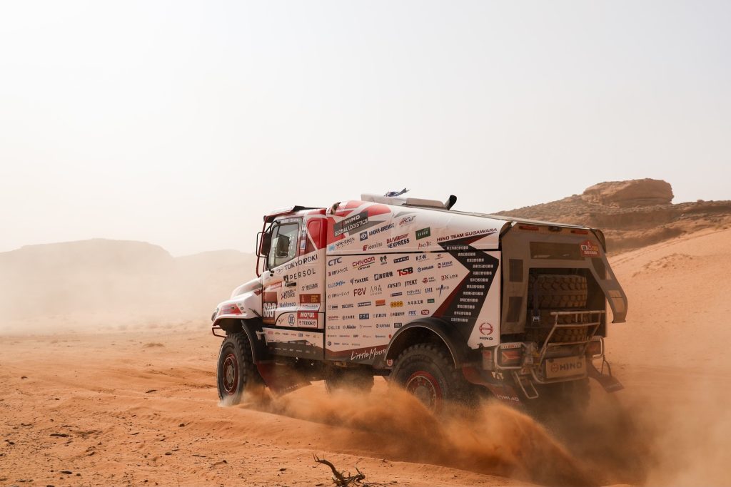 Sugawara (junior, senior schijnt aan de Africa Eco Race mee te doen eind deze maand, ondanks dat de 90 al aardig in zicht komt) rijdt een stabiele rally, we kunnen hem vaak rond de tiende plek terug vinden in zijn Hino. Vandaag werden ze achtste, vlak achter Martin van den Brink en ruim een half uur achter Macik. Hun truck, ‘Little Monster’ blijft een vreemde eend in de bijt. Lichter dan de meeste andere trucks, maar ook een kleinere motor.