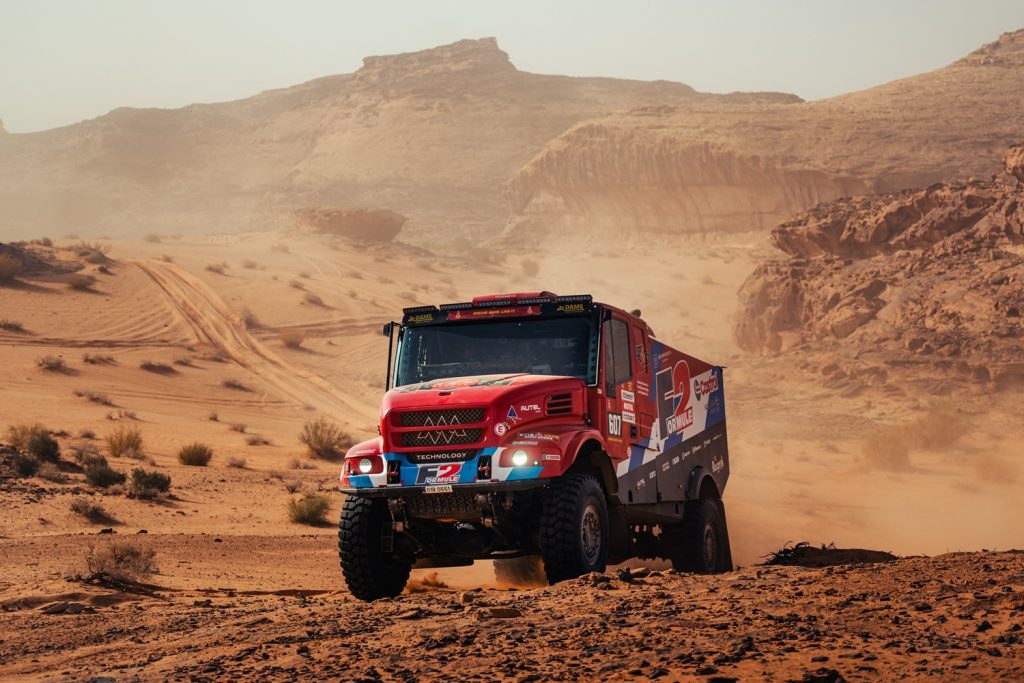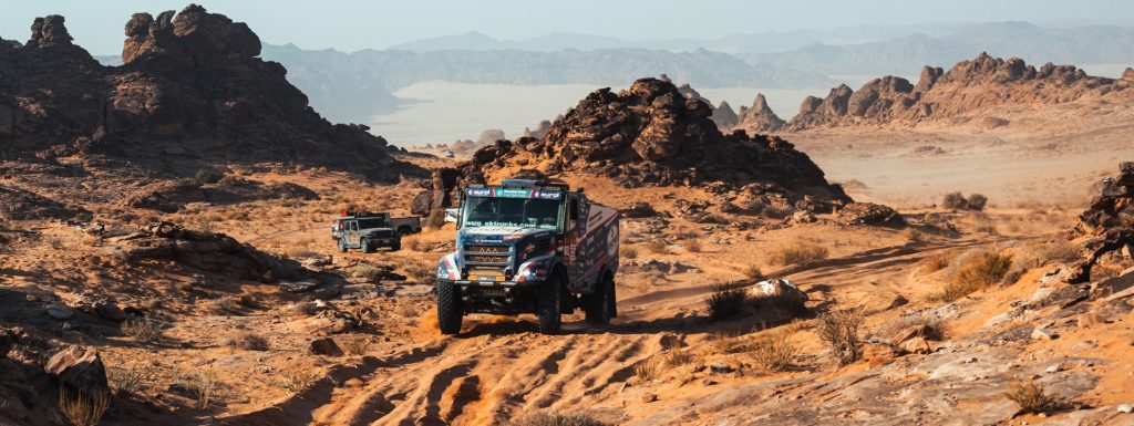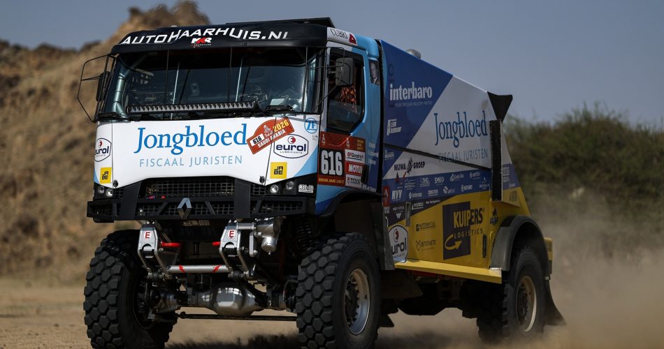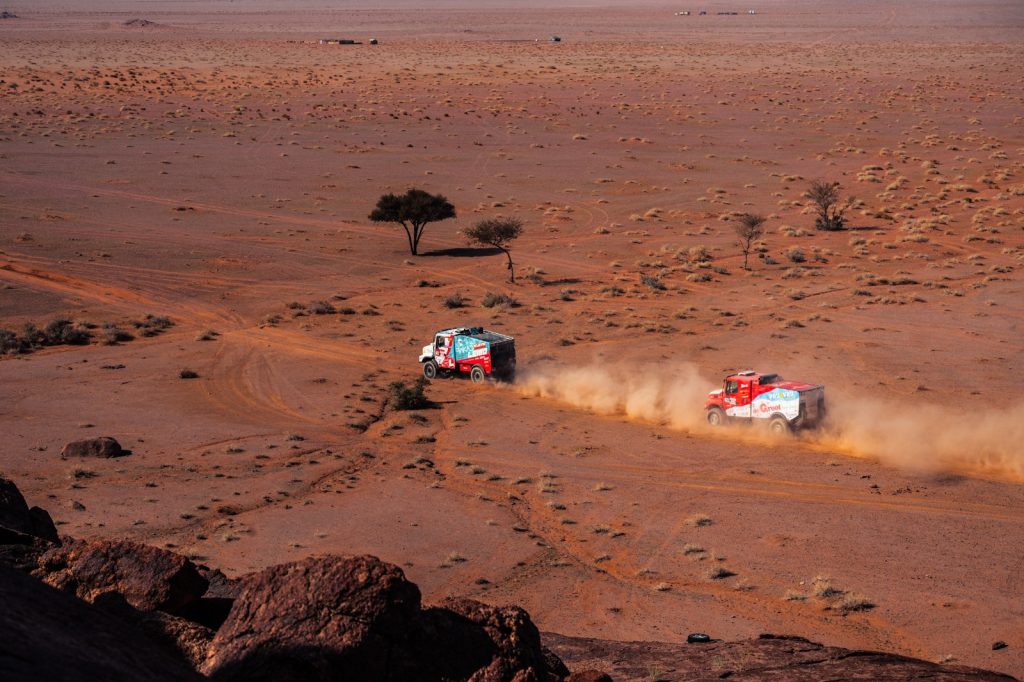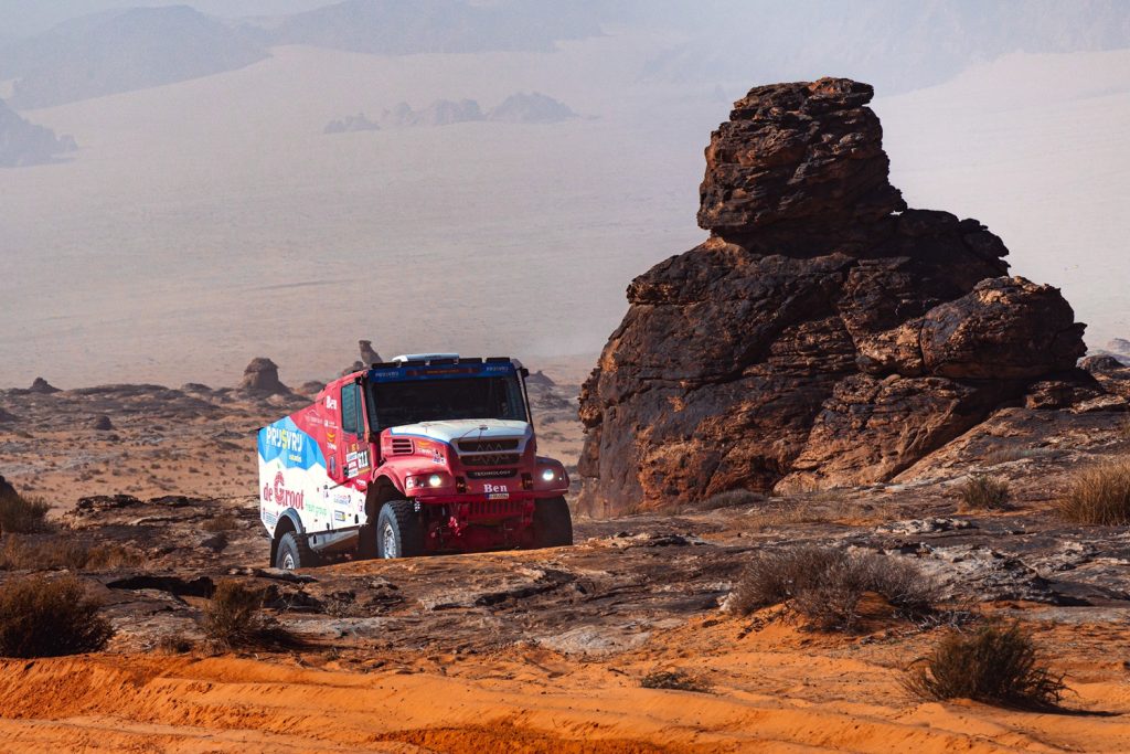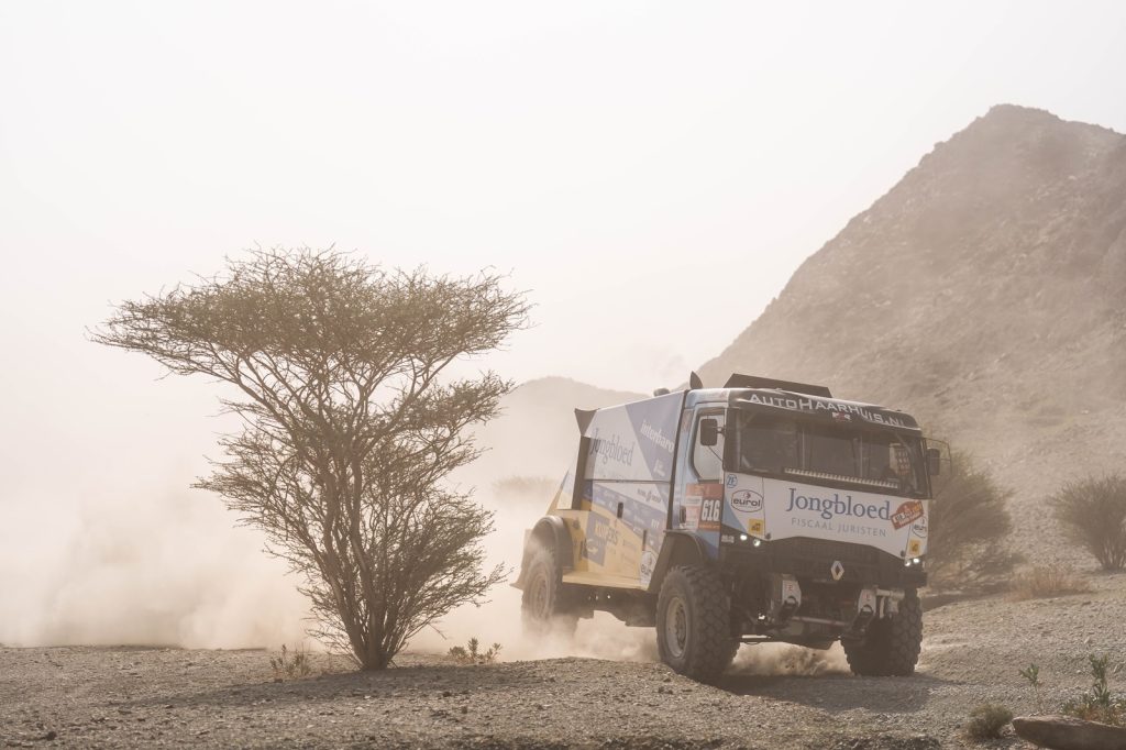 Jan Hulsebosch van het Firemen team: “Gisteren, stage 4, was zeker niet onze dag. Al na 5 km kregen we te maken met een motorstoring en daar hebben we de hele dag last van gehad. Deze storing konden we alleen weg krijgen door te stoppen en stroomloos te maken en dat meer dan 10 keer. Hierdoor hebben we veel tijd verloren, maar we zijn blij dat we het marathon bivak hebben gehaald en het probleem daarr op konden lossen met behulp van David, de monteur bij Martin Macik in de truck. Deze had gelukken een sensor bij hem. Achteraf waren we dus toch nog tevreden met plek acht. Het blijft altijd wel bijzonder, het marathon bivak in de woestijn. Het was ook echt behelpen, maar dat is de Dakar. Na een nacht onder de sterrenhemel in de woestijn begon stage 5. Dat was gelijk ander koek! Cenda, onze truck, en Richard hadden er echt zin in, want ze gingen weer als de brandweer, ze wilden denk toch wat goed maken van stage 4. Lange tijd lagen we eerste, jammer genoeg konden we de snelheid niet vasthouden, door te veel stof moesten we de snelheid hierop aanpassen, maar verder geen problemen gehad en op naar stage 6. Qua navigatie toch nog wat lastig was maar gelukkig alle waypoints gehaald.”