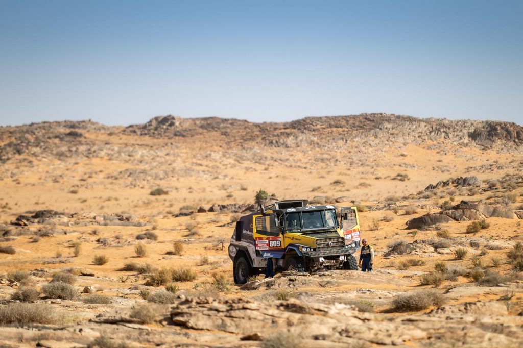 Het net niet halen van de etappe-overwinning door Mitchel van den Brink heeft een technische oorzaak. Mitchel: “Het was een marathon met uitdagingen. We hadden een paar technische problemen, waardoor we de dagoverwinning niet hebben behaald. We waren lang op de goede weg voor de winst. De ophanging van de cabine was echter niet goed genoeg meer om in het laatste deel van de proef hard genoeg te gaan op de technische stukken. We hebben minimaal tijd verloren en hebben de aansluiting met Macik. Er kan echt nog van alles gebeuren. Ondanks de technische problemen zijn we tevreden met het resultaat van de marathon etappe. Het wordt een drukke avond voor de monteurs in het bivak. Er is namelijk wel het één en ander te repareren aan onze truck.”