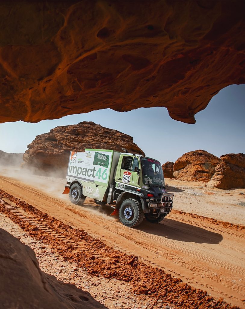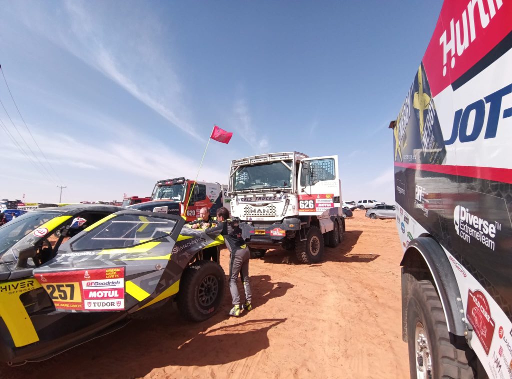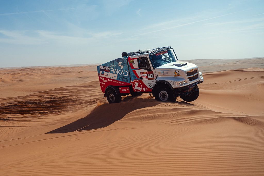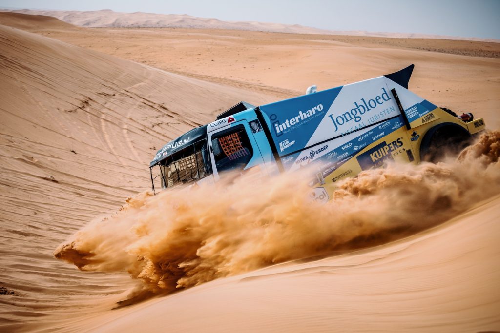 Mitchel van den Brink: “Het was een lange proef met mooi veel duinen. Op de piste was er een mooie strijd tussen Zala en Loprais. Loprais ging erg hard. We hebben hem laten gaan. Ook Zala kwam ons voorbij. Die mannen reden als een kamikaze. Wij wilden op de korte duinen geen gekke dingen doen door de truck te slopen op de korte knipjes. In het laatste deel door de snellere duinen hebben we Zala weer ingehaald. We staan nu weer eerste. Ja, we zijn dik tevreden en het is mooi dat we de leiding weer in handen hebben.”