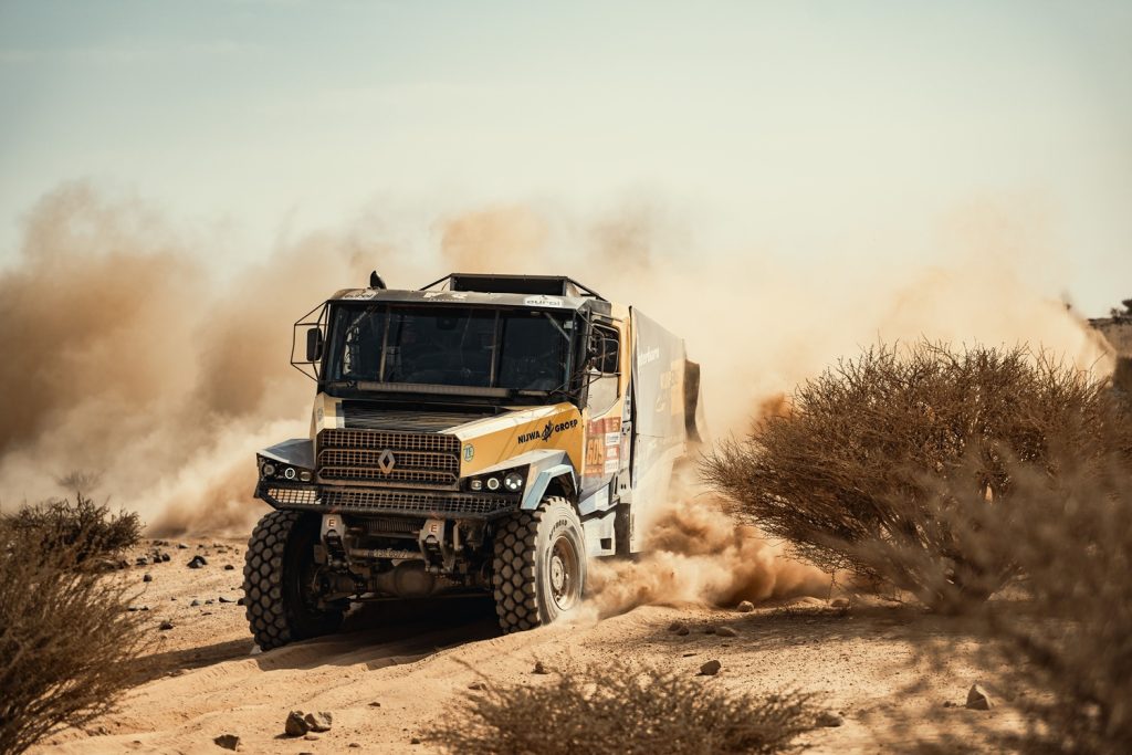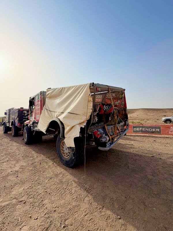 In ons dagverslag van gisteren stuurden we een tweetrapsraket aan complimenten richting Ben de Groot. De helft daarvan over zijn wegenwacht-acties eergisteren, blijft onverminderd staan. Maar de complimenten over de snelheid moeten we doorschuiven én aanvullen. Ben was zo verstandig gisteren niet meer in te stappen, hij heeft zijn rug nog vaker nodig. Dat is niks om je voor te schamen, dat kan de beste overkomen, vraag maar aan Gerard de Rooy. Maar de truck is wél gestart. Bij de trucks mag je met drie personen rijden, waar de overgrote meerderheid voor kiest, maar met twee mag óók. Zelfs als er tijdens de rally één van de oorspronkelijke drie afhaakt. Navigator Ad Hofmans mocht rijden, monteur Govert Boogaard navigeren én zijn boordmonteurstaken doen. Dat ze met zijn tweetjes het werk van drie man doen, en beide niet het werk wat ze gewend zijn, en dan alsnog zo snel zijn, dat verdient veel complimenten. Vandaag reed het duo naar een negende plek op +39:40. Maar wát een Dakar voor dit team. Het plan was om met twee trucks aan de finish te komen, nu lijkt het er op dat ze met twee mensen aan de finish komen, terwijl er ook nog steeds een teamlid met een extra stuk metaal in zijn lijf in het ziekenhuis ligt. In onze podcast reeks zegen we het vaak, de verhalen van de top zijn leuk, maar de échte bikkelverhalen vind je daar achter.
