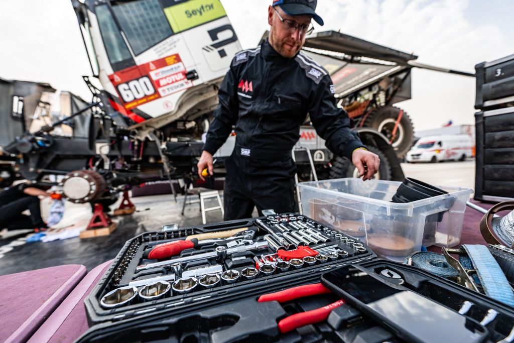 Kuipers-Jongbloed Hybrid teammanager Pascal de Baar: “We hoorden dat Gert de stuurinrichting kapot had. Die zei dat we met de Kerax (6×6 servicetruck, red.) naar hem toe moesten en hem op moesten laden, omdat hij naar het bivak ging.“