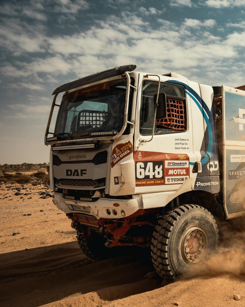 Vroeger vertelden we ook vaak over ‘de snelste DAF van de dag’. Laten we dat vandaag ook weer eens doen. Esteve werd veertiende op +2:08:42! We zagen deze truck afgelopen zomer zelf in actie tijdens de Baja Aragon, die XD grille staat de CF goed!