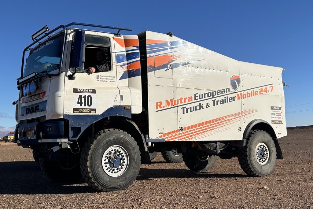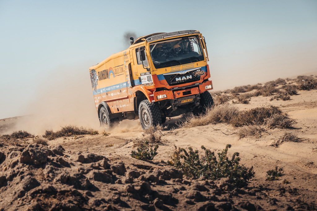 Roy Korenromp deed gisteravond verslag voor Truck Team Müller: “Nou, vandaag super proef gehad. Mooie uitzichten en een mooie route. Navigatie was best lastig, maar we hadden een mooi ritme. Het Franse team stond gelijk na de start al aan de kant. Op een lastig punt kwamen we Panhuijzen tegen. Die draaiden en kwamen achter ons aan, maar we zaten ook verkeer, dus weer draaien en de route zoeken. We hebben daarna niemand meer gezien. Mooie partijen duinen gehad. Een paar keer stil gestaan omdat we er niet over heen kwamen. Even de rust bewaren en bandenspanning nog meer naar beneden brengen en weer proberen. Het ging super vandaag !! We zijn net binnen en hoorden dat Panhuijzen halverwege terug is gekeerd. Dus een super dag met P2!!”