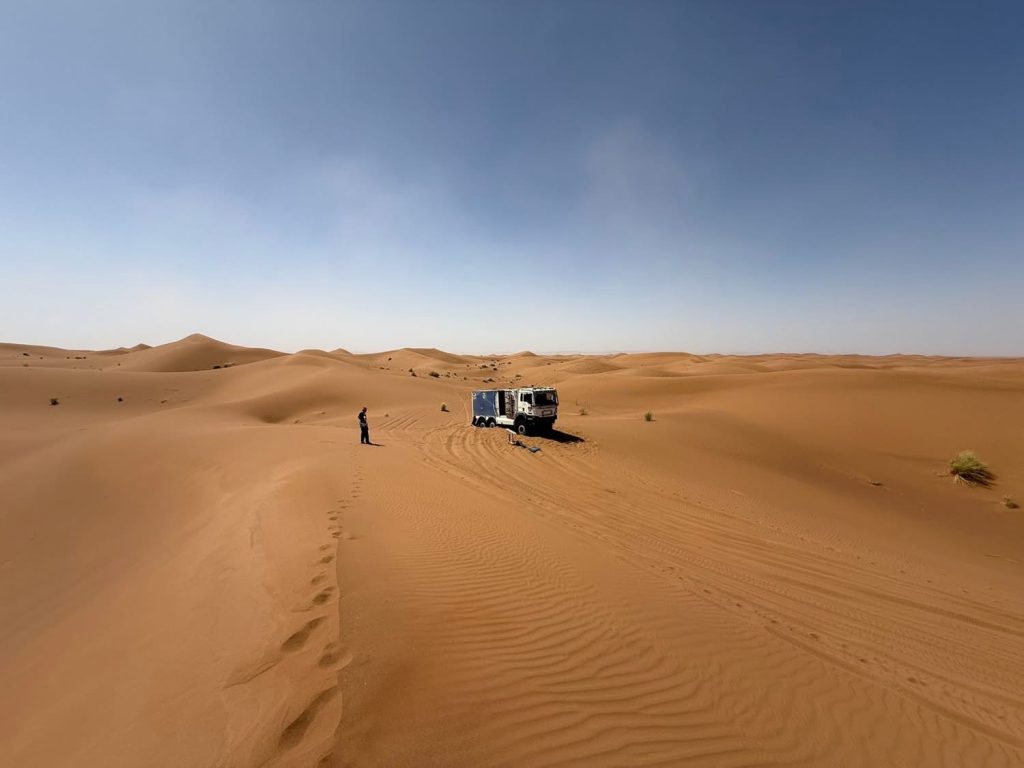 Het FOJA team met Fons Jans, Hans Heerema en Renaldo Schrave kenden een bijna probleemloze dag. Naar eigen zeggen konden ze even wat langer genieten van het mooie uitzicht boven op een duin omdat ze daar vaststonden. Na een beetje graafwerk konden ze verder met de DAF en na regulier ondehoud in het bivak gaan ze vol goede moed aan etappe vier beginnen.