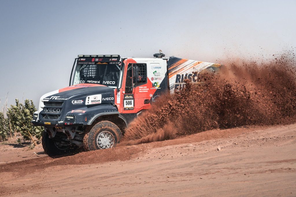 Dan gaan we tenslotte naar de absolute benjamin ondeer de truckers in de MDC van 2026. Marnix Leeuw (20) heeft onder de hoede van vader Marc een gedegen traject afgelegd om in een truck aan de Dakar deel te nemen. dat werd afgelopen januari een geslaagd doel en nu worden de bakens steeds een beetje verder verlegd. Zijn ultieme droom is het winnen van de Dakar rally in een truck. In een door Team De Rooy gebouwde truck werd in de derde etappe al een podiumplek behaald. In eerste instantie leek dat in de soep te lopen, maar gisteren werd duidelijk dat het team van Leeuw Rallysport toch tijd terug kreeg voor het helpen van een vastzittende deelnemer in de autocategorie. Met die prestatie in de pocket ging Marnix met Marije Wingens-Van Ettekoven en Bart Gloudemans in etappe vier op jacht naar meer. Dit keer lukte het net niet en moesten ze het doen met plek vier. De verschillen waren klein, dus wie weet wat er in deel twee van de MDC nog te halen valt.