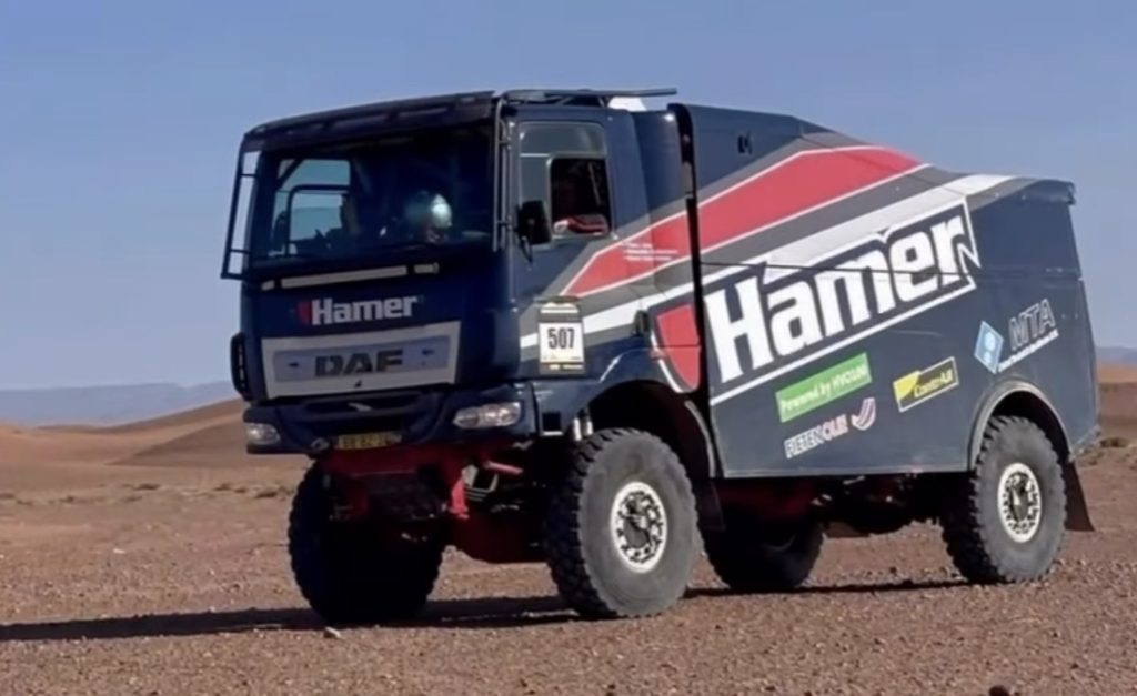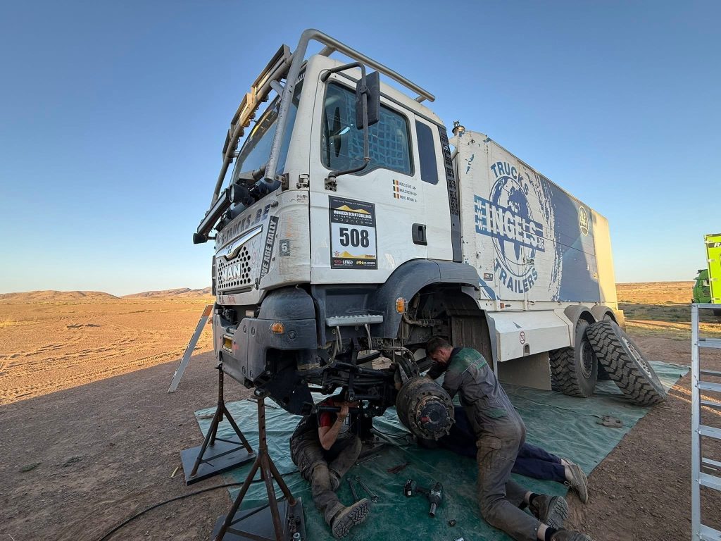 Steve Ingels (55) is een half jaartje jonger dan Martin van den Brink en rijdt net als de Harskamper met een volledige familiebezetting. Ingels heeft zijn zonen Victor en Arthur naast zich in de MAN truck. Met de enige 6×6 rallytruck die aan de MDC deelneemt begonnen de heren Ingels goed aan de etappe. Rond 140 kilometer klokt er echter een luide knal. Bij de tussenstop en tevens het befaamde broodjespunt werd snel duidelijk dat het een bladveer linksvoor boosdoener was van de klap. Alsof het de normaalste zaak van de wereld is werd nog wel doodleuk een buggy 40 kilometer op sleeptouw genomen, maar verder moest het team wel wat rustig aan doen. De laatste plek zullen ze verder voor lief nemen. Deze helden maken een ander avontuur mee, minstens zo gaaf dan de toppers voorin. En laten we wel wezen: Grote kans dat ze de niet bestaande 6×6 klasse gaan winnen.